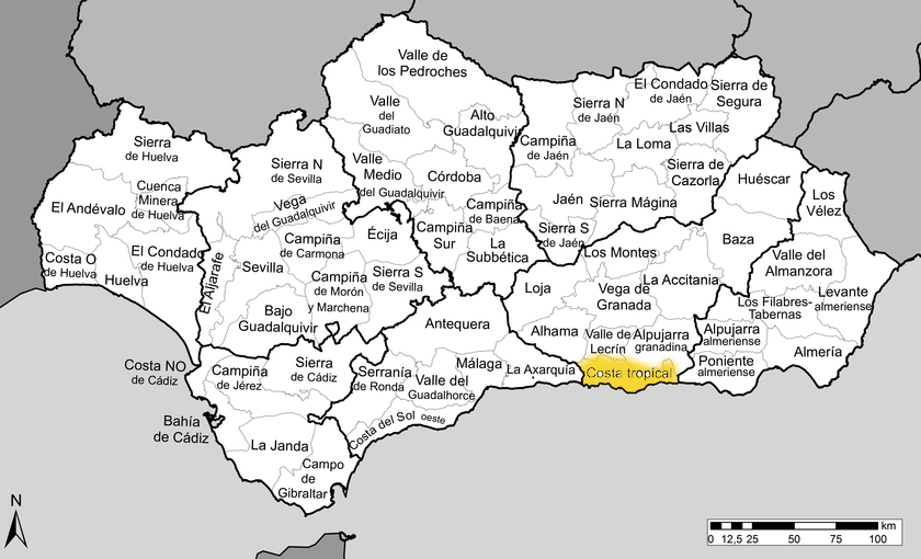 This post aims to give a curious reader a smattering of knowledge on the geography of the beautiful comarca Andalusa named Costa Tropical. It does not pretend to be an exhaustive and detailed study about each town or corner of Costa Tropical. We thought it would be nice to provide a key for understanding how the diverse territories of this comarca are named and where they are.
